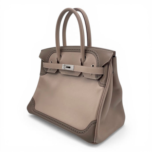 プレオウンドエルメス バーキン ギリーズ 30 アルジル/エトゥープ スイフト シルバー金具 □P刻印