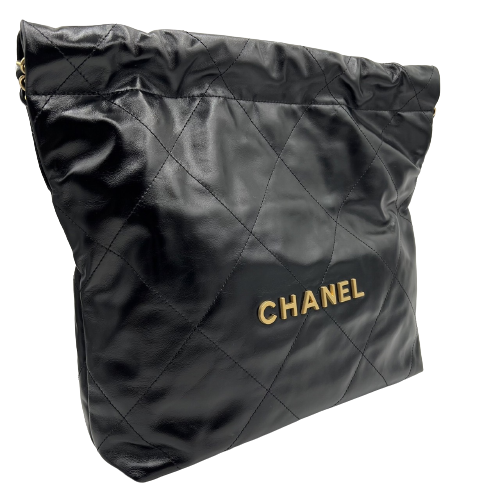 プレオウンド CHANEL シャネル22 チェーンショルダー ブラック カーフスキン