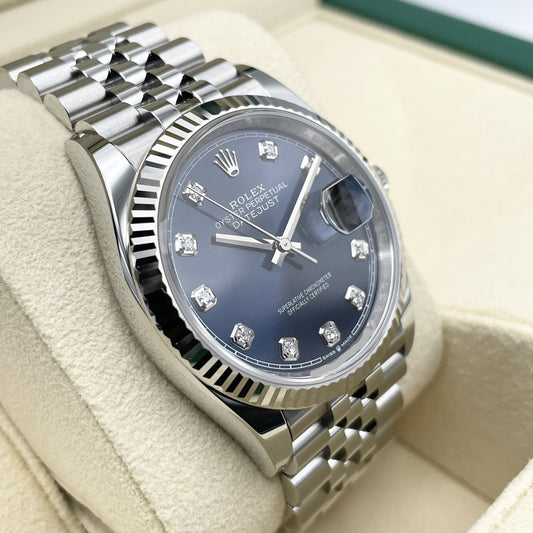 プレオウンド 【上品な輝き - シンプル イズ ベスト!】ロレックス デイトジャスト 126234G ダイヤモンド入り ブライトブルー 36mm