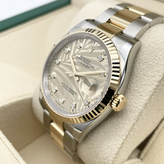 プレオウンド 【ディスコンモデル!2024年4月ギャラ!】ロレックス デイトジャスト 126233 シャンパン パームモチーフ 10Pダイヤ オイスターブレス 36mm