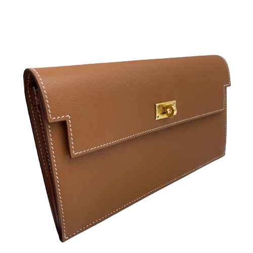 Pre-Owned Hermes Kelly Pocket Long Gold Vaumadam Gold Hardware W Engraved