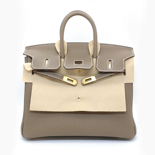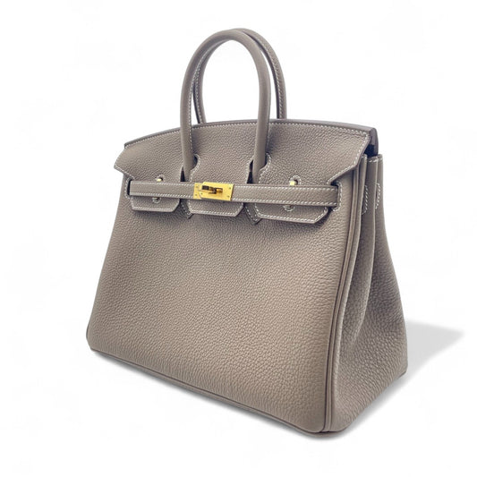 Pre-Owned Hermes Birkin 25 Etoupe Vaugh Epson Gold Fittings New
