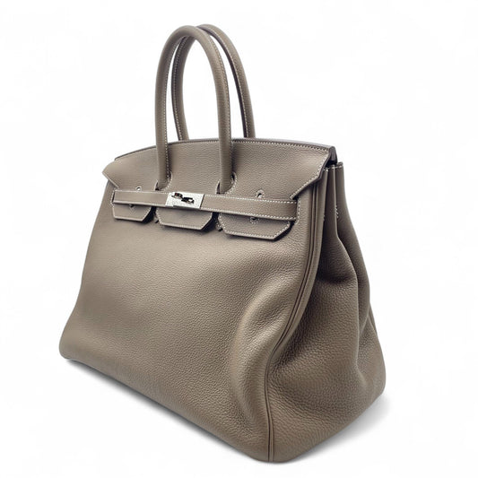 Pre-Owned Hermes Birkin 35 Etoupe Torillon Clemence Silver Hardware