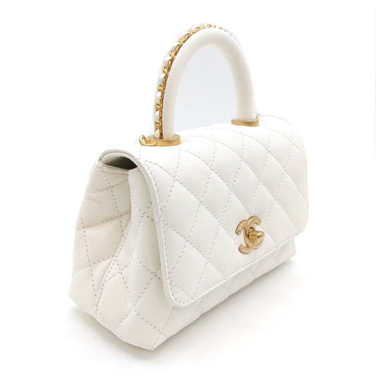 Pre-Owned Chanel Coco Handle XS White Caviar Skin