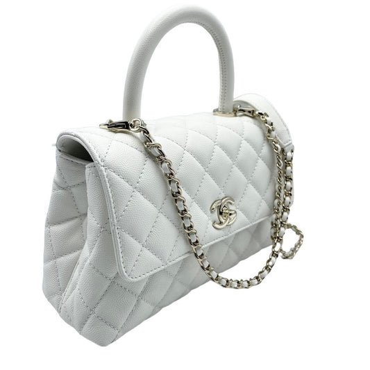 Pre-Owned Chanel Coco Handle Top Handle Flap Bag White Caviar Skin