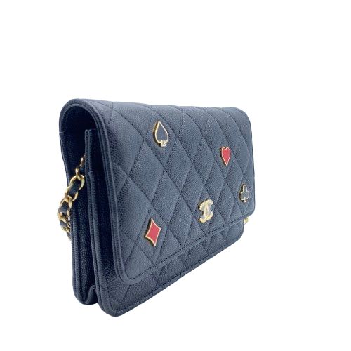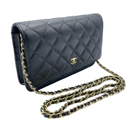 Pre-Owned Chanel Chain Wallet Black Caviar Skin Gold Hardware