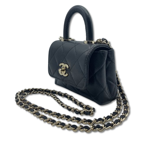 Pre-Owned Chanel Coco Handle 24 XS Black Caviar Skin Chain Handle