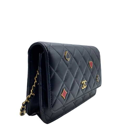 Pre-Owned Chanel Chain Wallet Monaco Series Black Caviar Skin AP3076