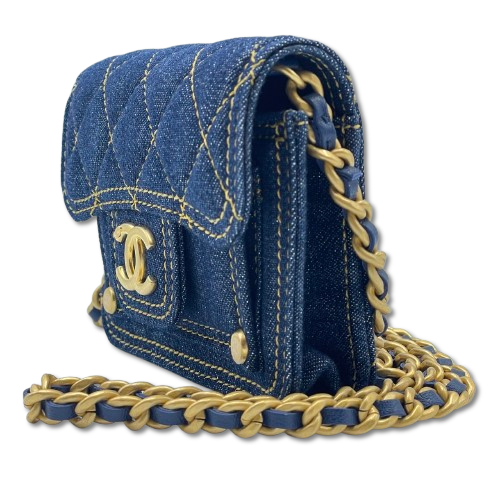 Pre-Owned Chanel Chain Shoulder Bag Blue Denim Gold Hardware