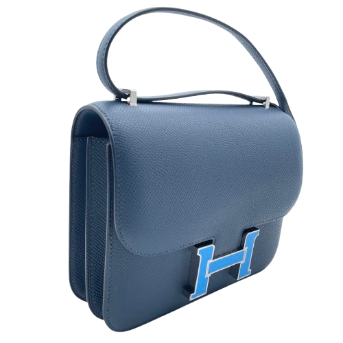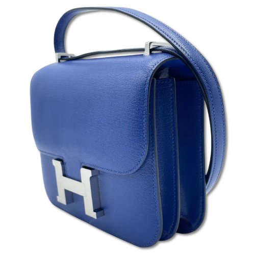 Pre-Owned Hermes Constance Mini 18 Blue Royal Chevre Silver Metal Fittings W Engraved