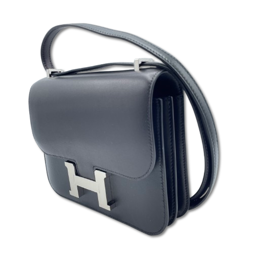 Preowned Hermes Constance Mini 18 Noir Vauer Evercalf Silver Metal Fittings W Engraved