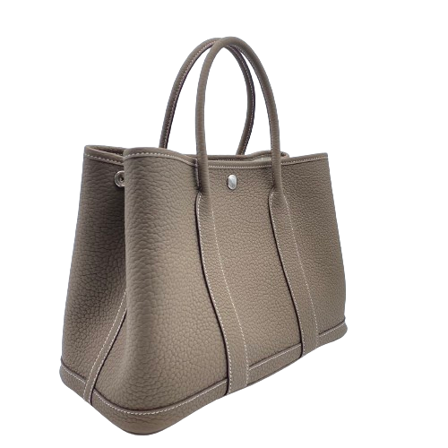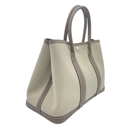 Pre-Owned Hermes Garden Party TPM Beton/Etoup Toil/Negonda Silver Fittings W Engraved
