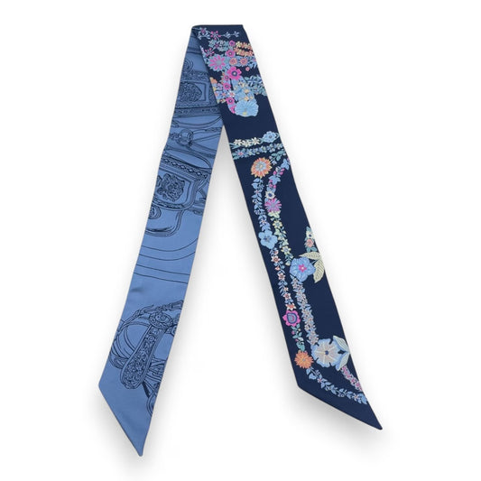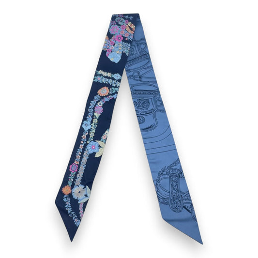 プレオウンドエルメス ツイリー ブリッド・ドゥ・ガラ・アン・フルール&アイライナー マリン/ピンク/ブルージーン シルク100%