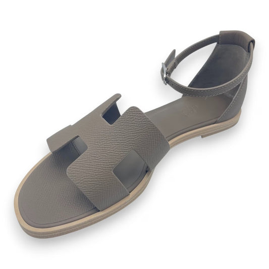 プレオウンドエルメス サントリーニ サンダル 37 エトゥープ カーフ 23.5cm