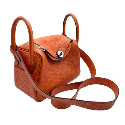 Pre-Owned Hermes Lindi Mini Who Orange Torillon Clemence Silver Fittings U Engraved