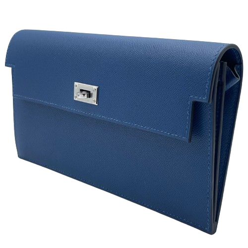 Pre-Owned Hermes Kelly Pocket Long Blue Nuit Togo Silver Fittings B Engraved