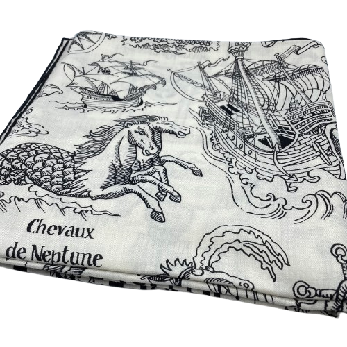 Pre-Owned Hermes Calejuan 140 Seaman Tattoo/Bandana Black/White Cashmere Silk