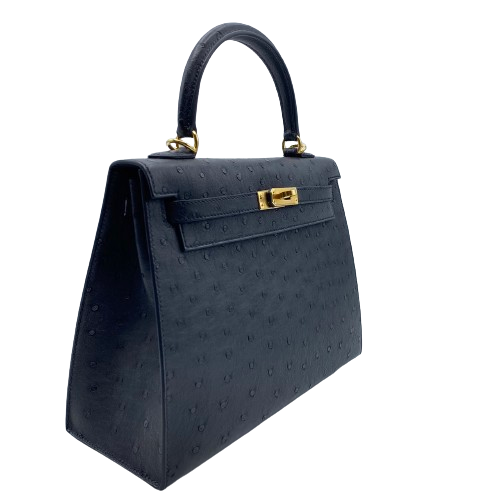 Pre-Owned Hermes Kelly II W25 Noir Ostrich Gold Hardware W Engraved
