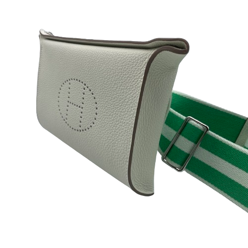 Pre-Owned Hermes Mini Evelyn TPM Torillon Clemence New White Silver Fittings W Engraved