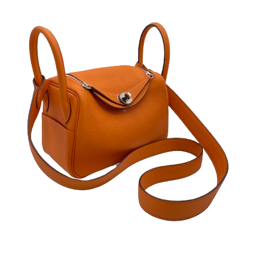 Pre-Owned Hermes Lindy Mini Orange Minian Torillon Clemence Silver Fittings U Engraved