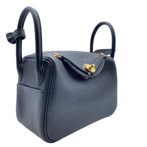 Pre-Owned [Cash Price] Hermes Lindi Mini Noir Torillon Clemence Gold Hardware W Engraved
