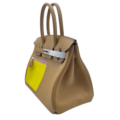 Pre-Owned Hermes Birkin Colormatic 30 Chai/Lime/Cashsis Swift Silver Metal Fittings B Engraved