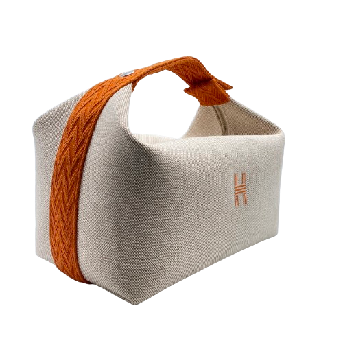 Pre-Owned Hermes Bride a Black W21 Orange Toile Ash Plum Silver Hardware