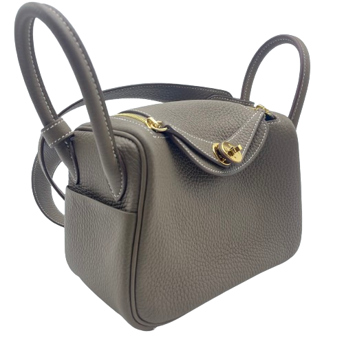 Pre-Owned [Cash Special Price] Hermes Lindy Mini Etoup Torillon Clemence Gold Hardware U Engraved