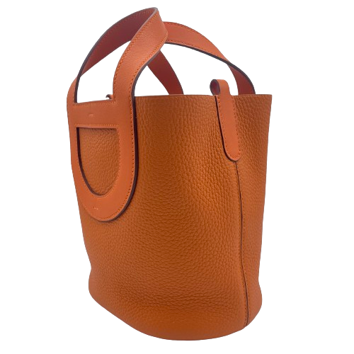 Pre-Owned Hermes Picotin Lock PM Orange Torillon Clemence Silver Fittings W Engraved