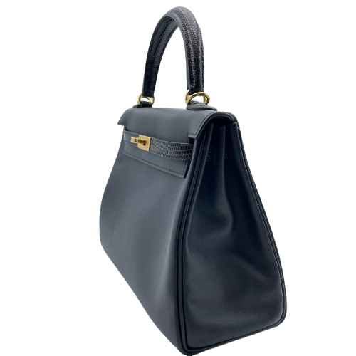 Pre-Owned [Cash Price] Hermes Kelly Touch 25 Noir Swift Lizard Gold Hardware B Engraved