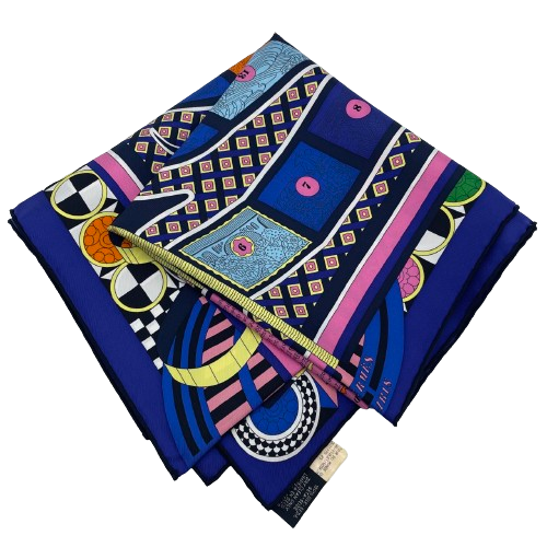 Pre-Owned Hermes Carre 90 Le Tour du Monde en 63 Cases violet/rose/bleu Scarf Silk