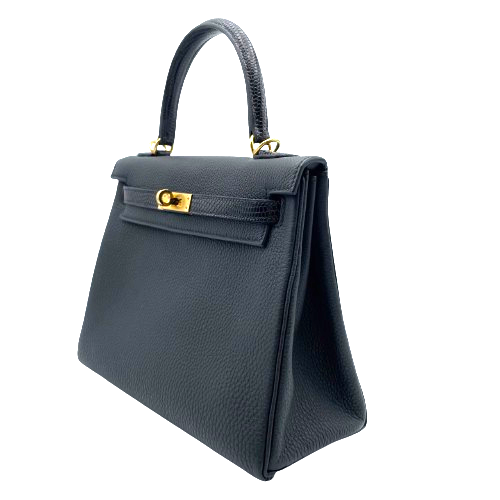 Pre-Owned Hermes Kelly Touch 25 Noir Togo/Lizard Gold Hardware Z Engraved