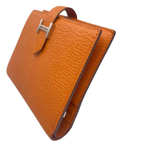 Pre-Owned Hermes Bean Compact Orange Chevre Silver Metal Fittings U Engraved