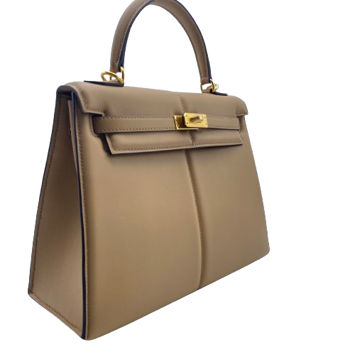 Pre-Owned Hermes Kelly Padded 25 Chai Swift Gold Hardware B Engraved
