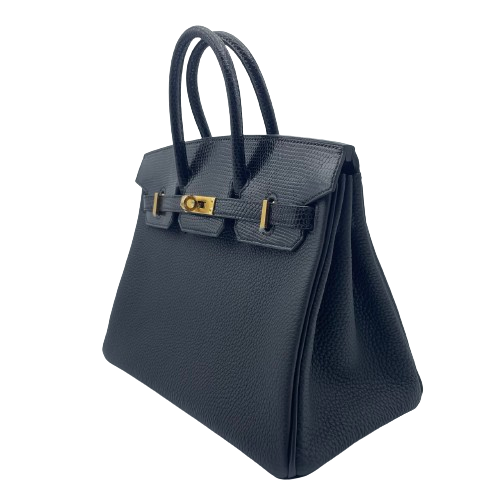 Pre-Owned Hermes Birkin Touch 25 Noir Togo/Lizard Gold Hardware B Engraved