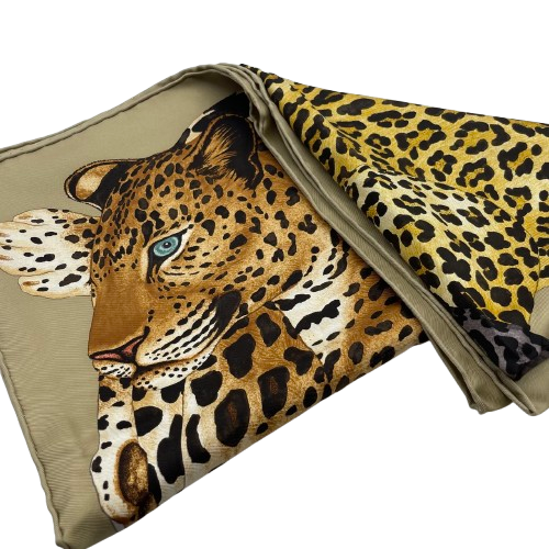 Pre-Owned Hermes Carre 90 LAZY LEOPARDESSE Lazy Leopard Beige 100% Silk
