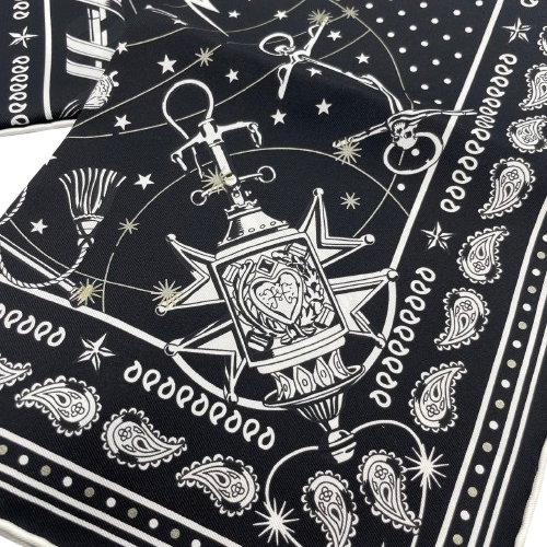 Pre-Owned Hermes Carre 55 Chorus Stellarum Noir/Blanc Silk 100%