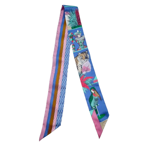 Pre-Owned Hermes Twilly GRAND THEATRE NOUVEAU Blue Lavande/Rose/Vail 100% Silk