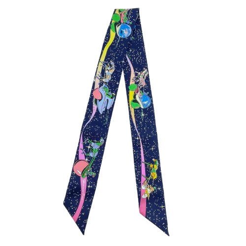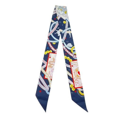 Pre-Owned Hermes Twilly Space Derby Marine/Rose/Multicolor Silk 100%