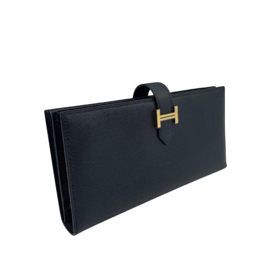 Pre-Owned Hermes Bean Souffle Noir Epson Gold Hardware B Engraved