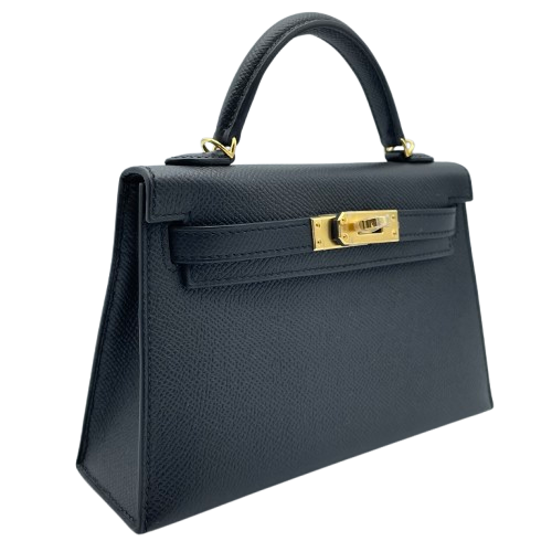 Pre-Owned Hermes Mini Kelly Noir Epson Gold Hardware W Engraved