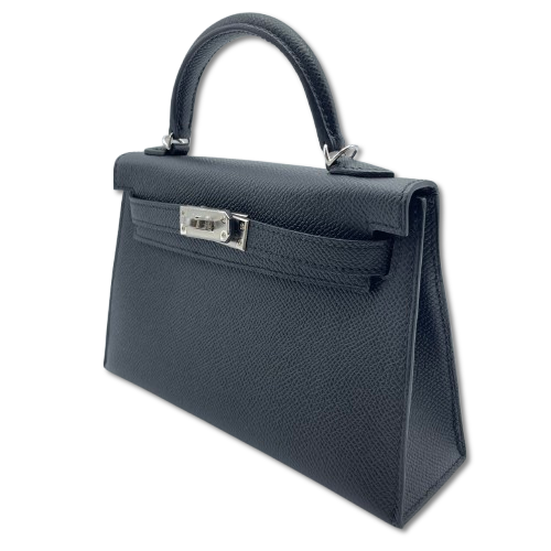 Pre-Owned [Cash Price] Hermes Mini Kelly Noir Epson Silver Fittings W Engraved