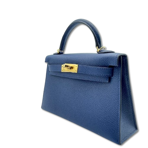 Pre-Owned Hermes Mini Kelly Blue Navy Epson Gold Hardware B Engraved