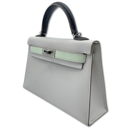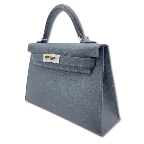 Pre-Owned Hermes Mini Kelly Gripele/Graphite/Vellfizz Epson Silver Metal Fittings B Engraved