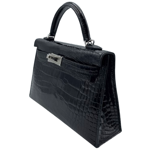 Pre-Owned Hermes Kelly 20 (Mini Kelly) Noir Crocodile Silver Fittings Z Engraved