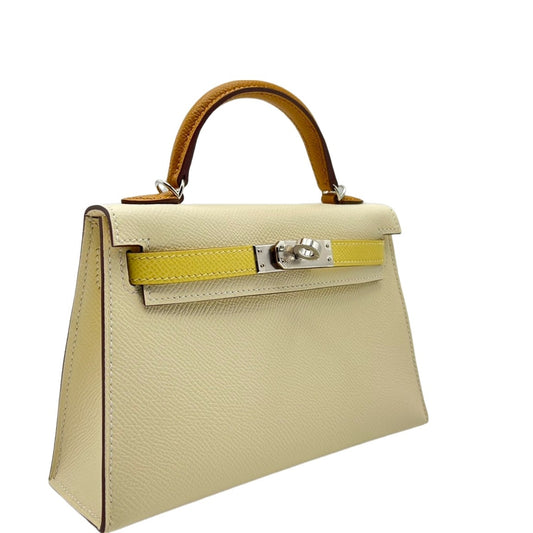 Pre-Owned Hermes Mini Kelly Nata/Jaune Pussant/Sesame Vaux Epson Silver Fittings U Engraved