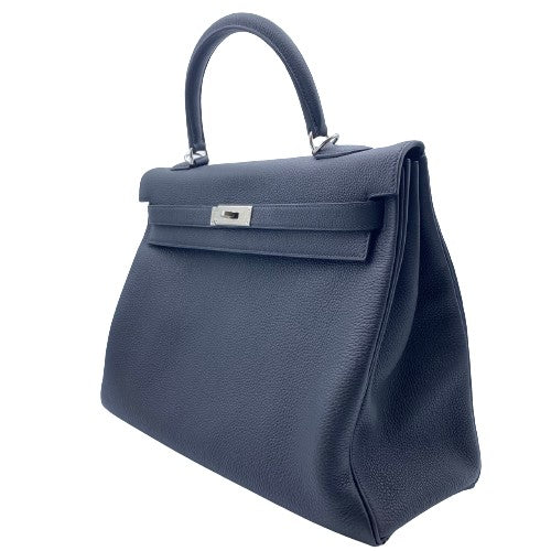 Pre-Owned Hermes Kelly 35 Noir Togo Silver Fittings U Engraved