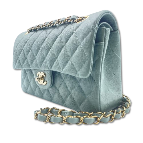 Pre-Owned Chanel Matelasse Double Flap Bag Pale Green Caviar Skin Gold Hardware