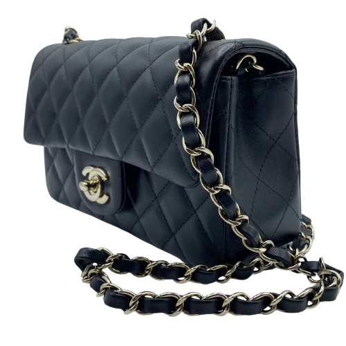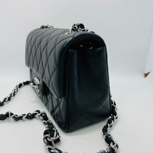 Pre-Owned Chanel Minimatelasse A69900 Black Lambskin Silver Hardware