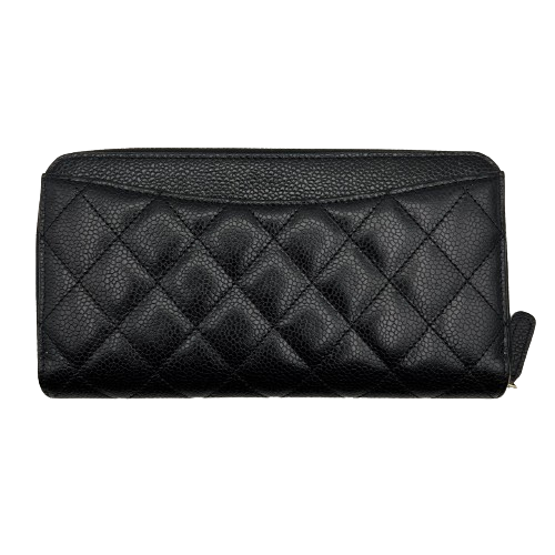 Pre-Owned Chanel Matelasse Caviar Skin Round Zipper Long Wallet Black Gold Hardware